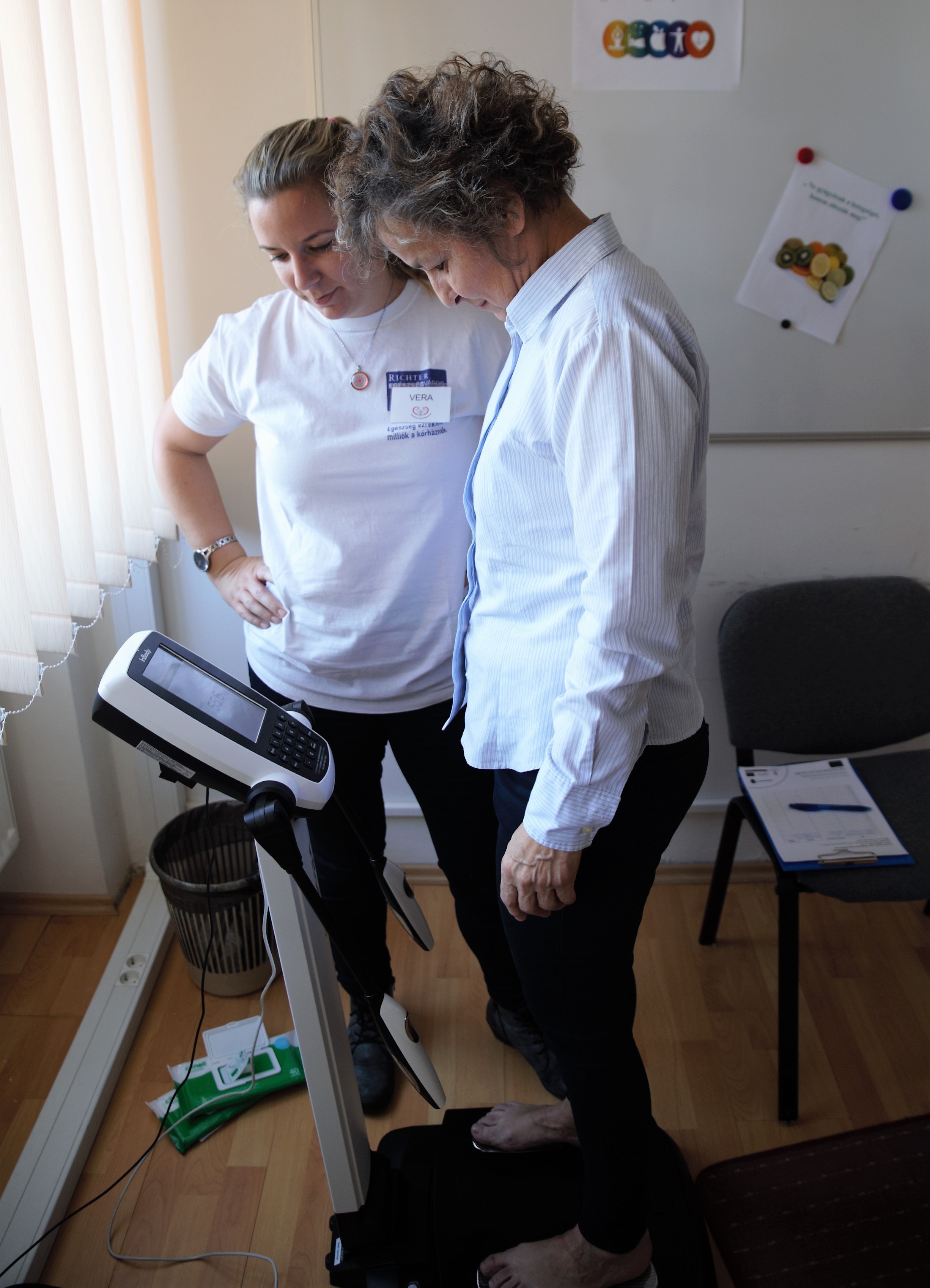 Az idei évben az egészségügyi szűrések – vérnyomásmérés, vércukormérés - mellett a Nagyatádi Egészségfejlesztési Iroda munkatársai - Simon Mercédesz az EFI vezetője és Bencsikné Mohari Veronika - állapotfelmérést végeztek IN BODY 270 testanalizálóval.