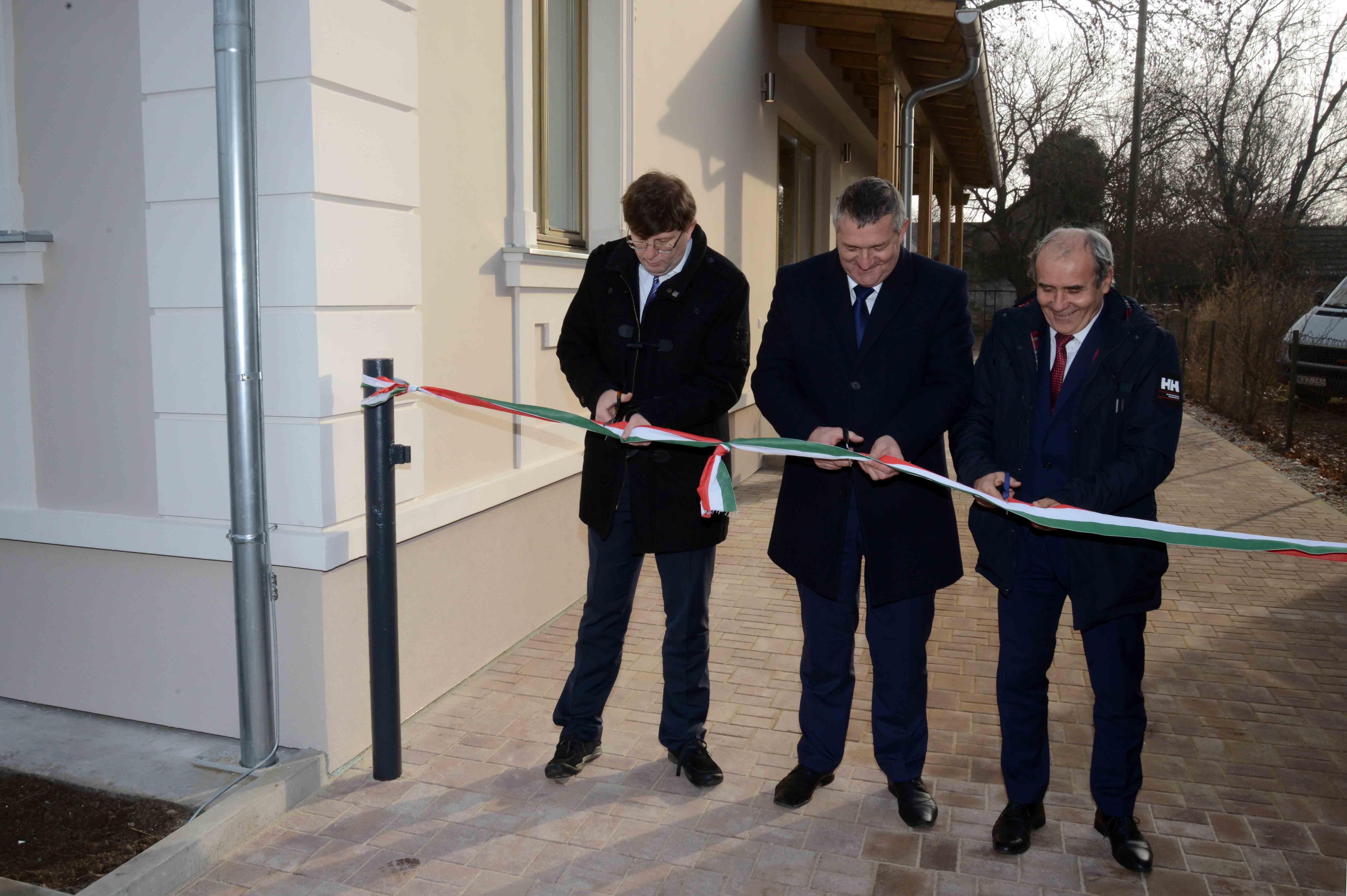 Az országgyűlési képviselő, a kormánymegbízott, a közgyűlés elnöke és a polgármester szalagátvágással átadták az épületet.