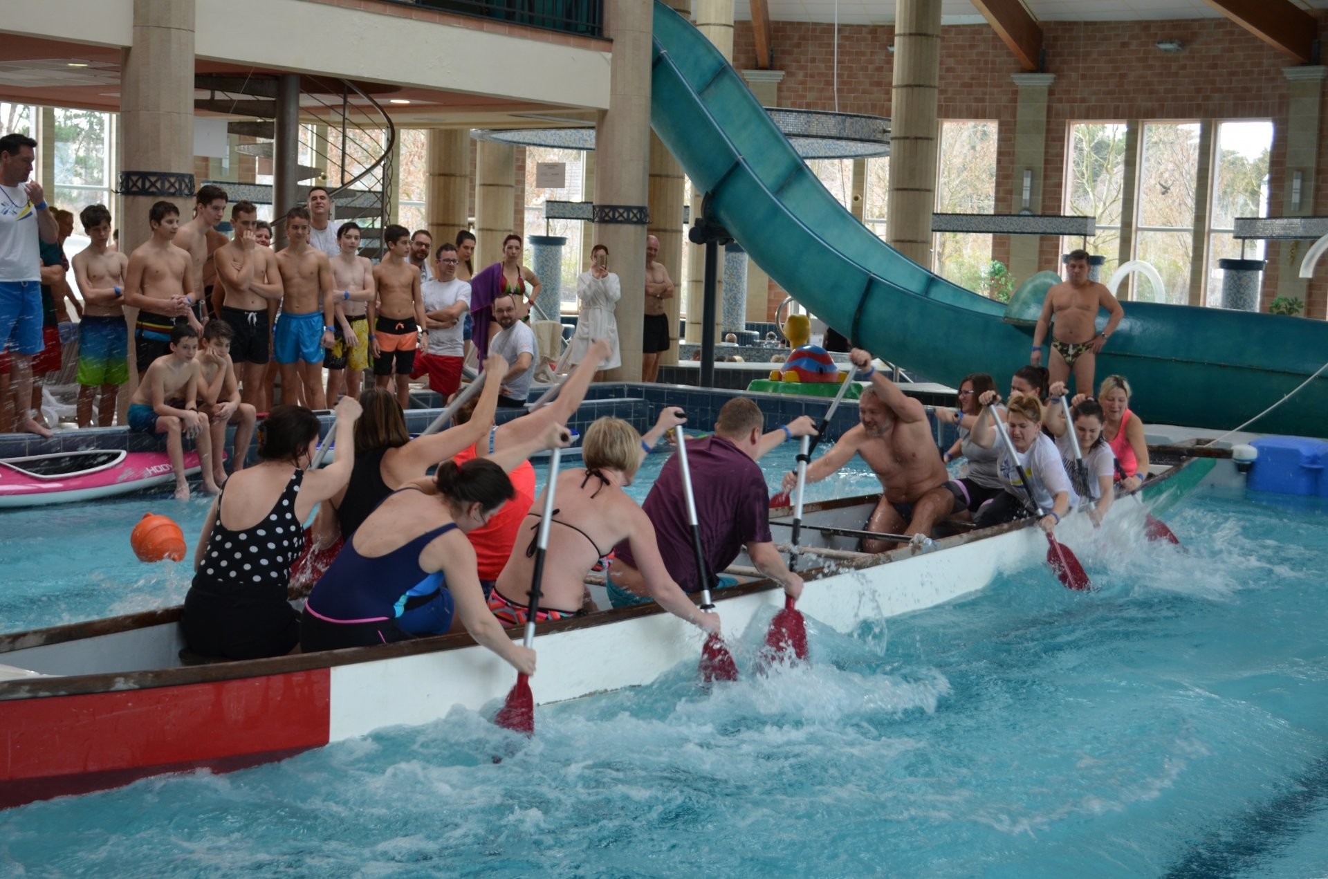 Képzeljünk el egy fordított irányú kötélhúzást, majd helyezzük el a versenyzőket egy medencében ringatózó sárkányhajóba. Az eredmény fergeteges hangulat, villámgyors evezőcsapások, összehangolt csapatmunka és küzdelem az I. medencés sárkányhajó-verseny győztese címért.