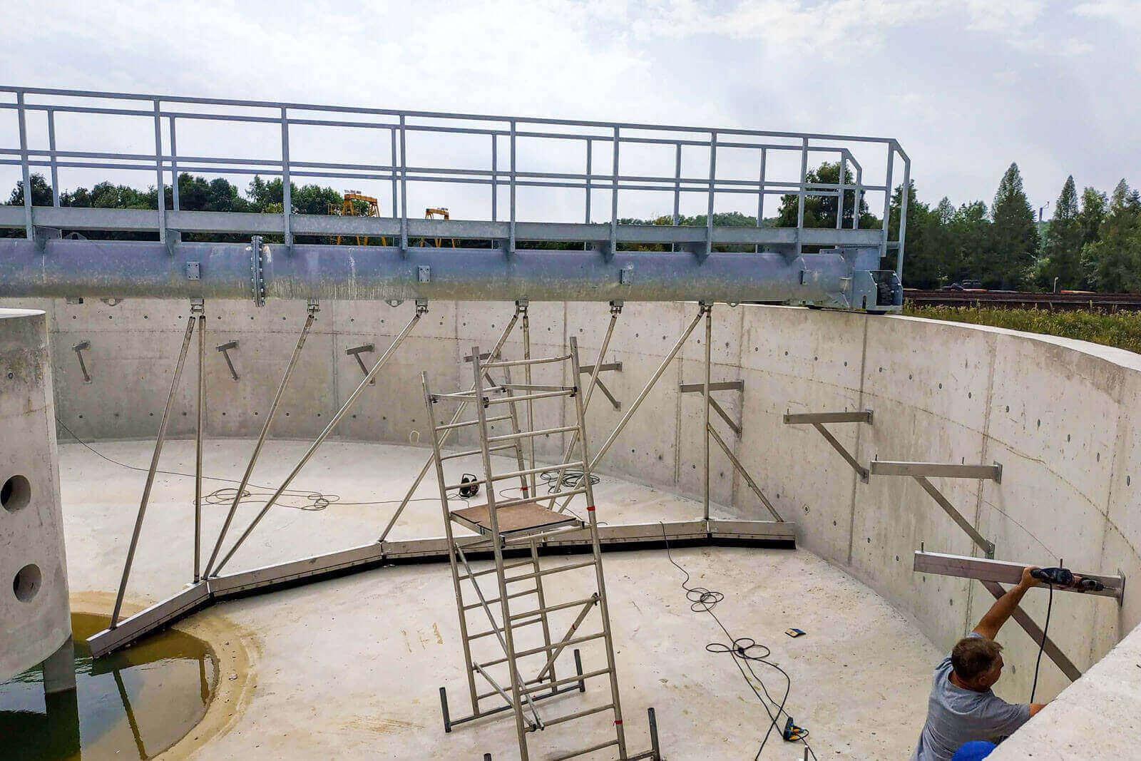 „Nagyon sikeres volt a víztartási próba az első műtárgynál, valamint az elkészült I. és II. ülepítőnél is” – fejtette ki a műszaki ellenőr.