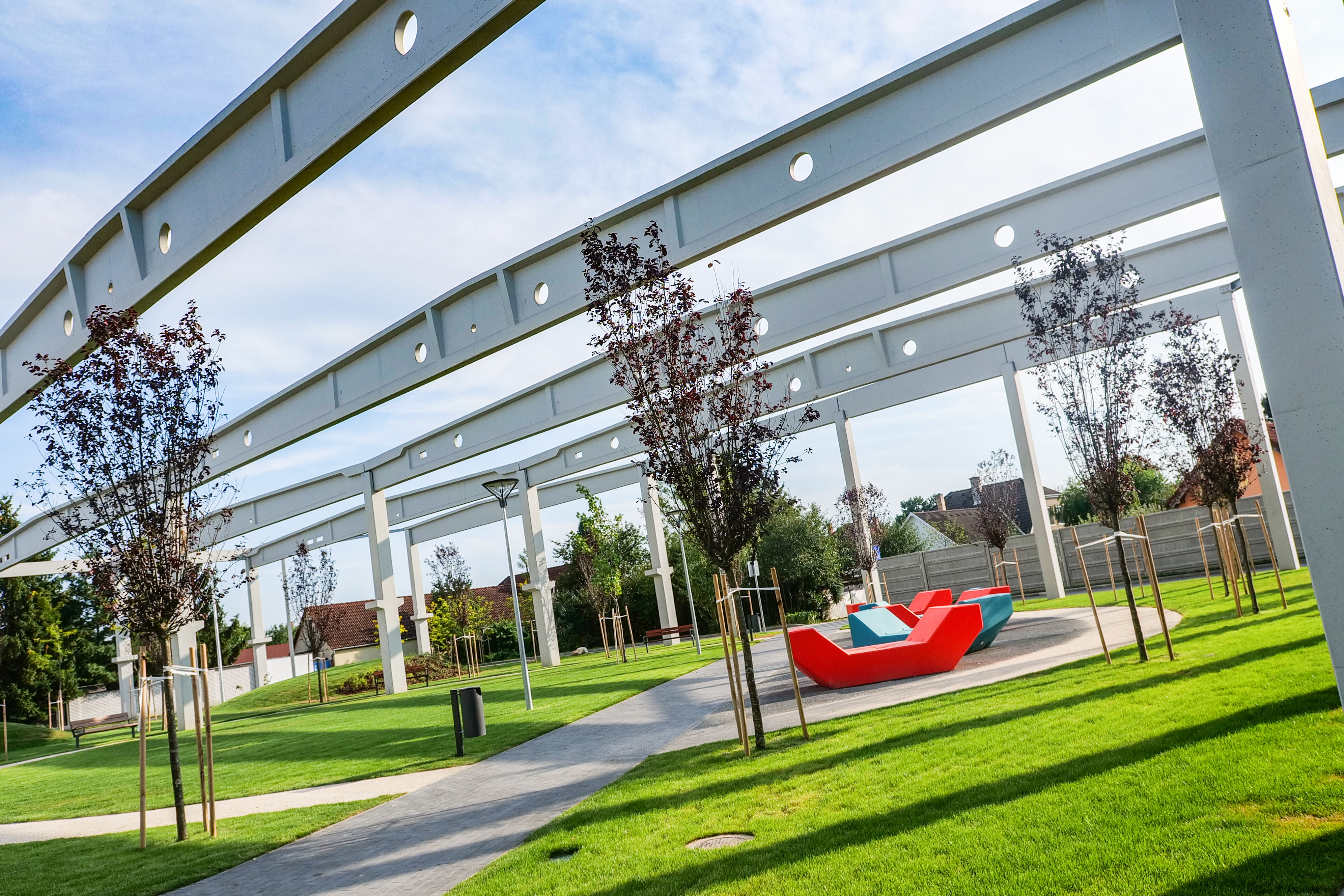 A bevásárlóparkhoz szervesen kapcsolódó szabad területen befejeződött a pihenőövezet kialakítása, amely a Bíborliget nevet kapta