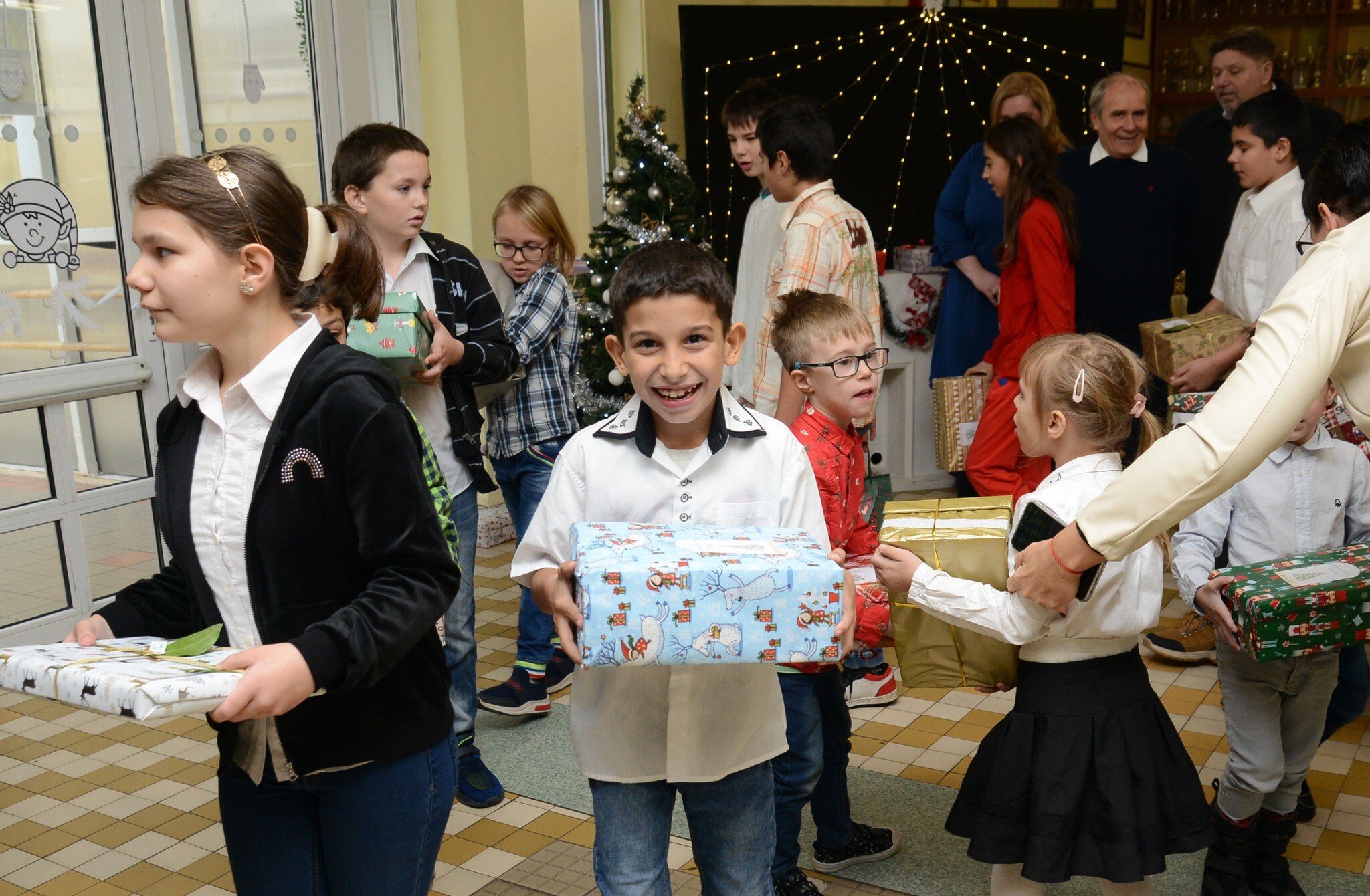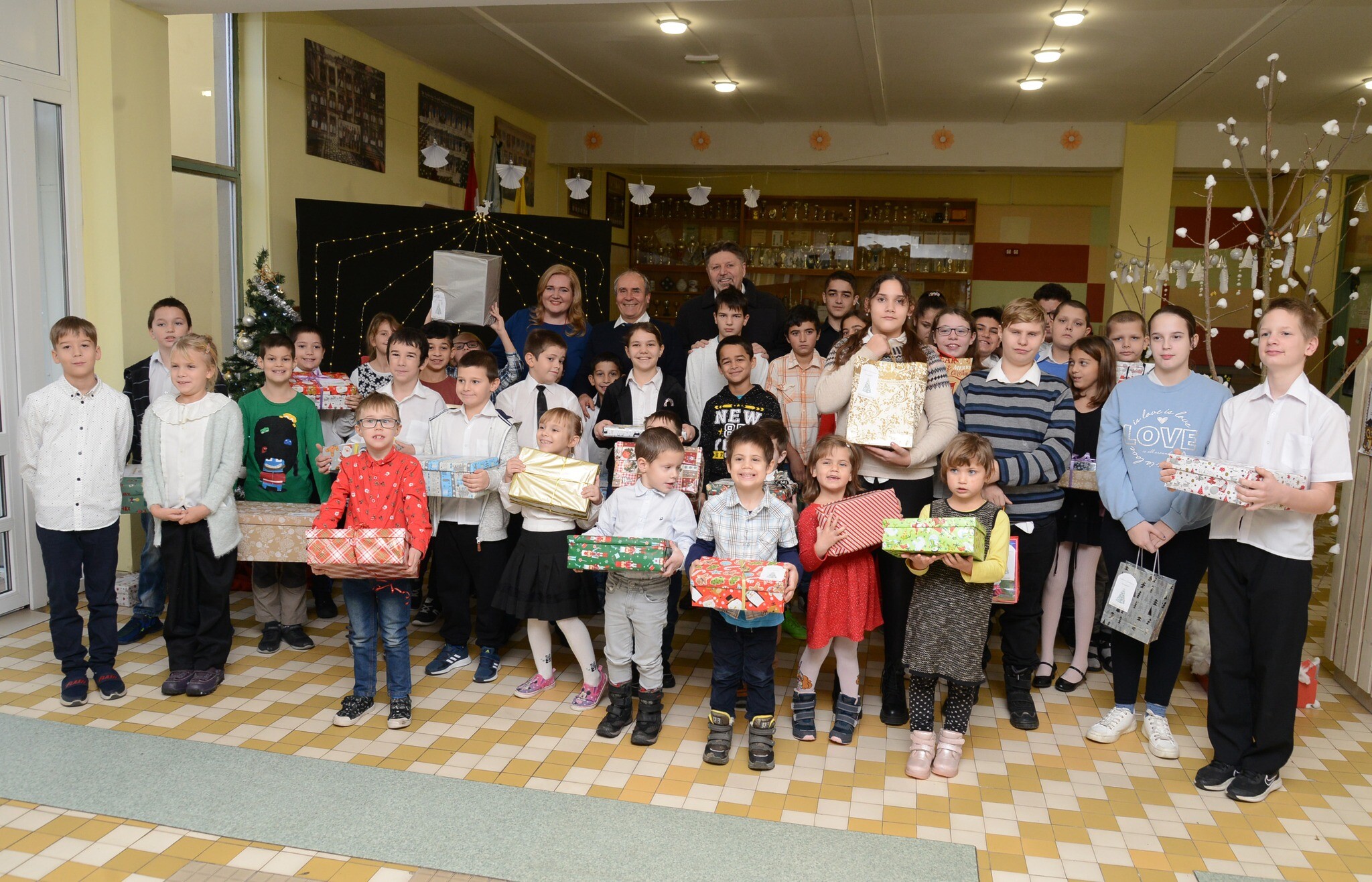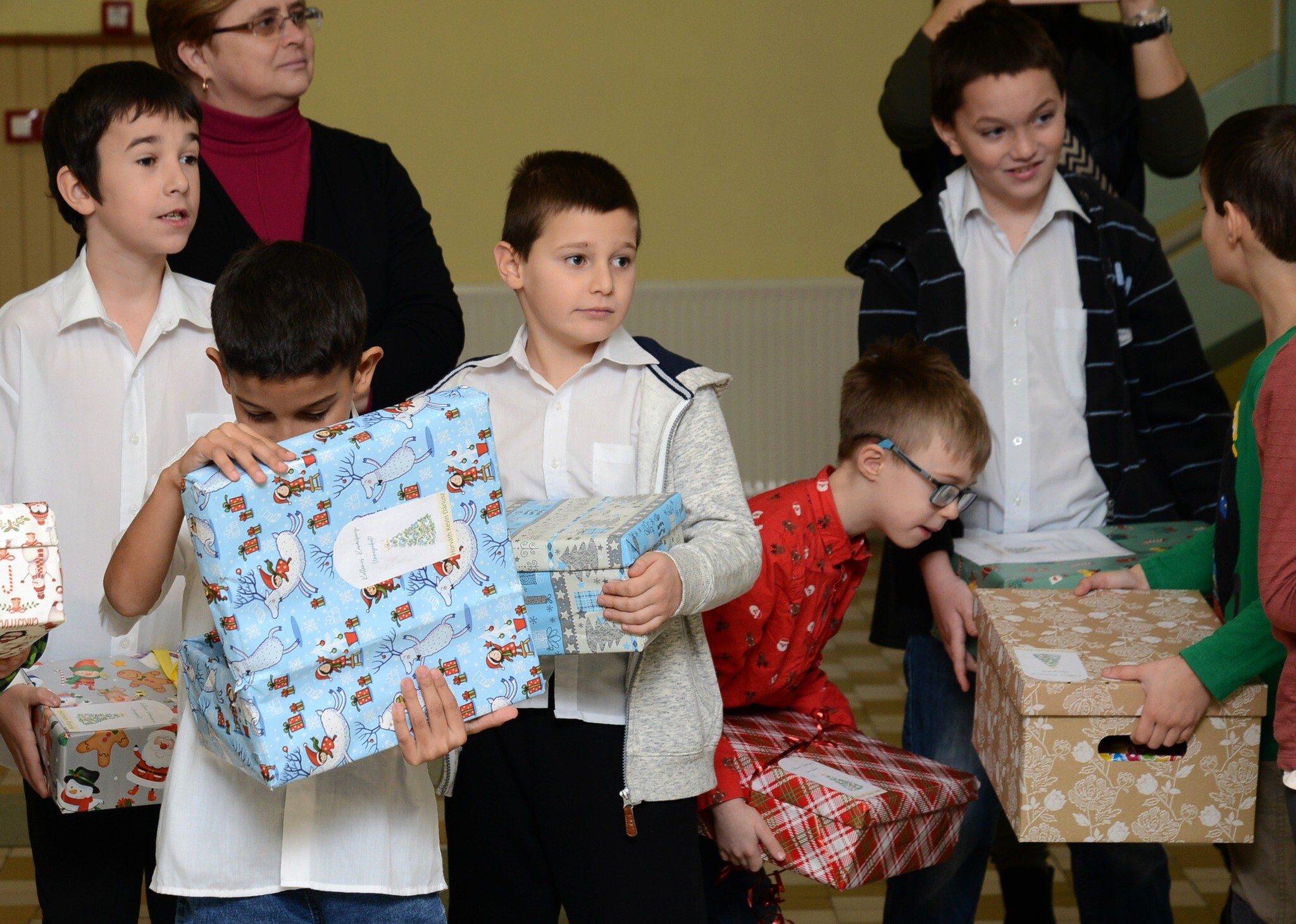 Az első 48 csomagot a kaposvári Duráczky József Óvoda, Általános Iskola, Egységes Gyógypedagógiai Módszertani Intézmény és Kollégium óvodásai és diákjai vették át csütörtökön. Dr. Neszményi Zsolt főispán, dr. Kovács Kornélia járási hivatalvezető és Gelencsér Attila országgyűlési képviselő a gyerekek és pedagógusok verses, énekes műsorát követően, névre szólóan nyújtották át a kicsiknek és nagyoknak a szépen becsomagolt ajándékokat, miután megbizonyosodtak arról, hogy az intézménybe csakis jó gyerekek járnak.